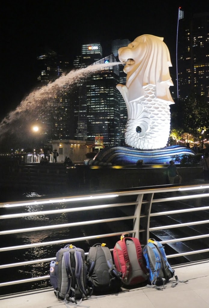 Tujuan utama sudah ditetapkan, Phuket dan Bangkok, di Thailand. Siem Reap dan Phnom Penh, untuk Kamboja. Dan Ho Chi Min City atau Saigon Vietnam. Kalau Singapura, sengaja kami memilih penerbangan transit yang agak lama di Singapura, biar bisa jalan-jalan dulu dan bayar utang yang tertinggal—nonton Wonder Full Light & Water Spectacular Show. Akibat lapar dan ngejar makan dulu, ternyata ujung-ujungnya belum kebayar juga utang di Singapur ini. Tanda-tanda, berarti harus ke sini lagi lain kali.