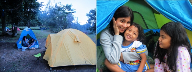 Tahun pun berlalu, sejak menikah dan punya anak, nyaris nggak pernah lagi ke Cibodas. Sampai akhirnya, sahabat saya Leony mengenalkan Mandalawangi Camping Ground. Mandalawangi yang satu ini bukan lembah bertabur Edelweis yang terdapat di sekitar 100 meter dari puncak Gunung Pangrango. Lokasinya terletak persis sebelum kantor Taman Nasional Gunung Gede Pangrango. Dari gerbang kawasan sekitar 500 meteran, terus masuk parkiran yang ada di sebelah kanan jalan. Tiketnya Rp 27.500 perorang untuk satu hari camping. Peralatan bawa sendiri. Kalau nggak punya, sewa di sini juga bisa.