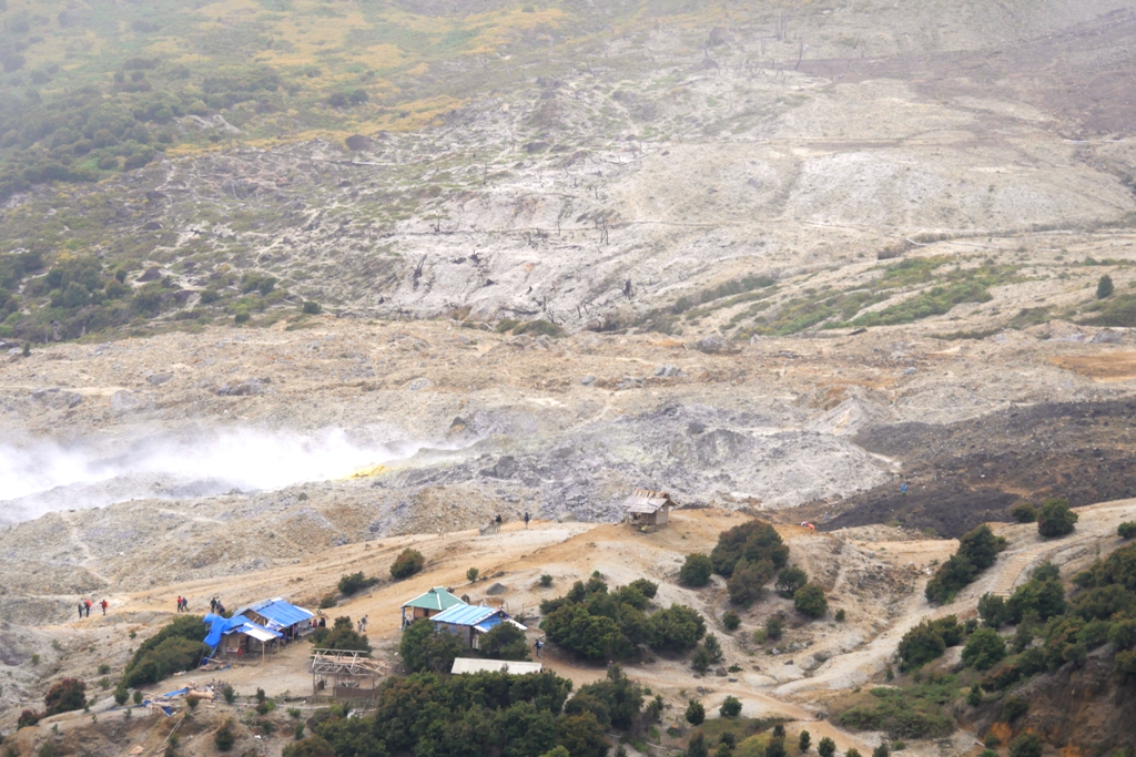 Di warung, kami makan mie instan lagi… yeeaay.. ketemu gorengan lagi.. pokoknya sehat (mudah-mudahan). Sebelum melewati jalur kawah menuju Camp David, saya memandangi sepatu saya yang jebol telapak kakinya. Sepatu trekking merk Head yang umurnya lebih tua dari umur Lana yang menginjak 9 tahun di 2017. Sepatu ini sudah setia menemani perjalanan blusukan keluar masuk hutan, mulai dari pedalaman Sulawesi, Kalimantan, Sumatera, sampai singgah ke manca negara. Nasibnya berakhir di sini. Tapi kata si Bapak pemilik warung, atasnya masih bagus. Buat saya aja katanya. Sol-nya mau dibenerin. Nanti kalau udah rapih lagi mau dikasih buat anaknya.. Aissh, sok atuh pak mangga.. Buat saya ini bukan sembarang sepatu, tapi banyak kenangan tersimpan bersamanya.. tsaah