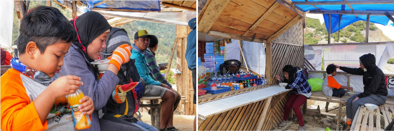 Papandayan mungkin termasuk salah satu gunung yang ramah bagi pendaki amatir. Di beberapa titik tersedia toilet dan air keran. Terus ada warung juga. Jadi sebenernya, gak perlu banyak logistik karena bisa beli. Menu makanan pilihannya cukup banyak. Ada Indomie, Mie Sedap, Sarimi, Pop Mie, Telur, Nasi, lontong, gorengan tahu, bakwan dan pisang. Dan diujung jalur pendakian batu dan kawah, tersedia cilok.
