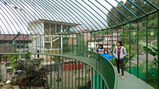 Masuk Ciwidey Valley bayar Rp 15.000 perorang sudah dapat soft drink. Itu harga Juli tahun 2016. Mau apdet harga tiket, boleh tengok sendiri situsnya di sini . Dengan tiket itu kita bisa main di playground, jalan-jalan di sekitar resor sambil nengokin bungalownya yang cantik-cantik, plus ada taman burung mini.
