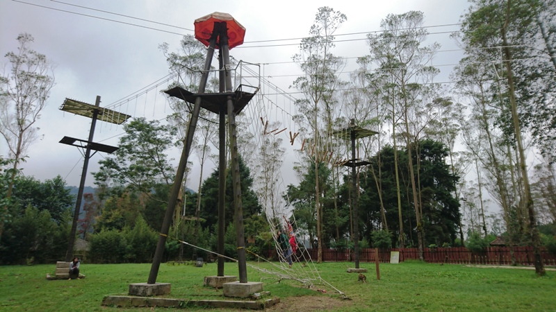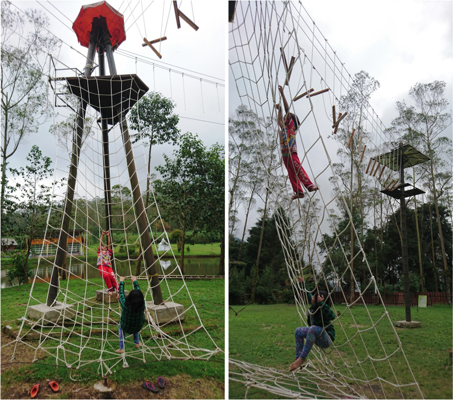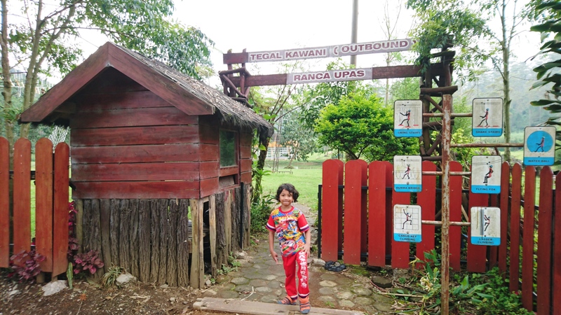 Selain penangkaran rusa, di dalam kawasan perkemahan juga ada tempat outbond. Masuk ke sini juga bayar tiket lagi. Tapi karena masih pagi banget, tempat outbondnya belum beroperasi. Belum ada orang. Cuma kita bisa masuk buat liat-liat dan sedikit nyoba-nyoba fasilitas di dalamnya.