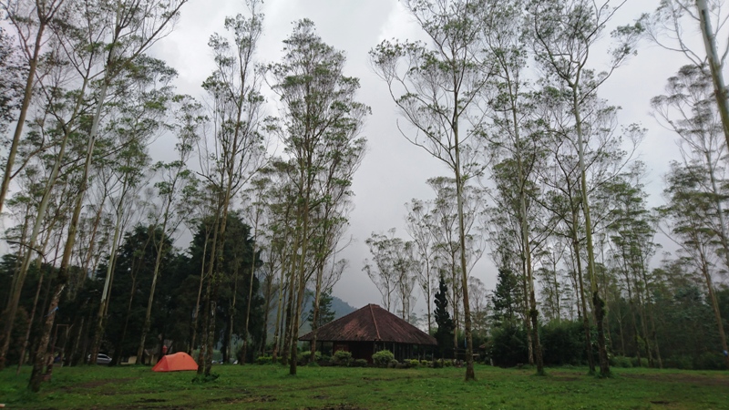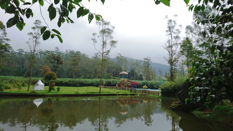 Bumi Perkemahan Ranca Upas berlokasi di Ciwidey, Kabupaten Bandung, Jawa Barat. Tempat ini sudah ada sejak tahun 1980-an. Belakangan, bumi perkemahan juga diberi nama Kampung Cai Ranca Upas. Mungkin karena sudah dilengkapi dengan waterpark berair panas alami di dalam kawasannya. Kata suami yang lahir dan besar di Bandung, Ranca Upas udah jadi tempat pilihan camping sejak zaman ia sekolah dulu. Dan ke sinilah kami datang, buka tenda selama dua malam, sebagai bagian dari Road Trip Lintas Selatan Jawa Barat yang kami jalani selama satu minggu.