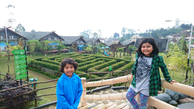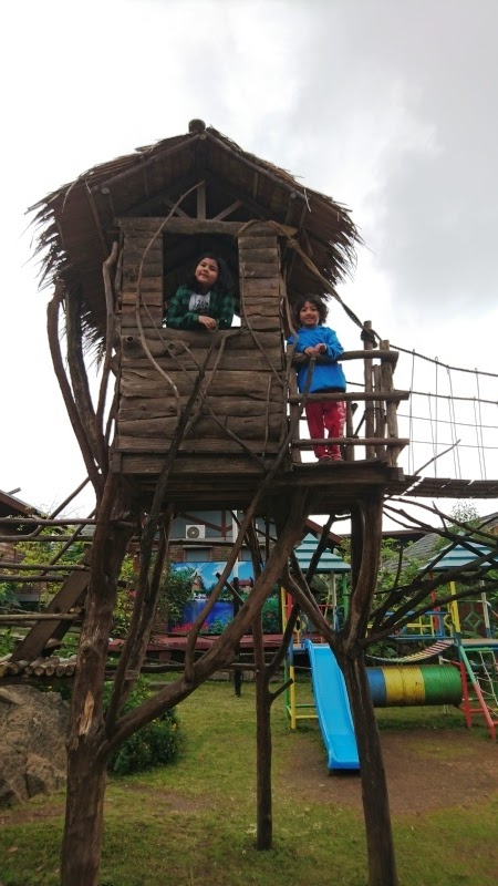 Masuk Ciwidey Valley bayar Rp 15.000 perorang sudah dapat soft drink. Itu harga Juli tahun 2016. Mau apdet harga tiket, boleh tengok sendiri situsnya di sini . Dengan tiket itu kita bisa main di playground, jalan-jalan di sekitar resor sambil nengokin bungalownya yang cantik-cantik, plus ada taman burung mini.