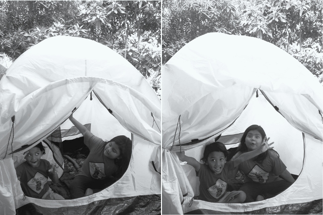 Inilah camping yang penuh godaan. Saking banyaknya godaan yang datang, kemping kali ini bisa dibilang sangat-sangat jauh dari kata sukses. Masih panjang menuju tengah malam, bahkan jam belum menunjukkan pukul delapan, tapi satu per satu peserta kemping sudah menyerah dan mulai meninggalkan tenda. Niat buat tidur dan bermalam di tenda akhirnya pupus. Padahal dari siang, Lana dan Keano sudah semangat, dan sepertinya punya tekad kuat buat bermalam di tenda. Tapi apa daya, memang suasananya gak mendukung. Saya cuma bisa pasrah melihat anak-anak meninggalkan tenda. Wong saya juga kena, gak kuat menerima godaan. Dari pada dipaksain, akhirnya tenda ditinggalkan dan dibiarkan kosong begitu saja.