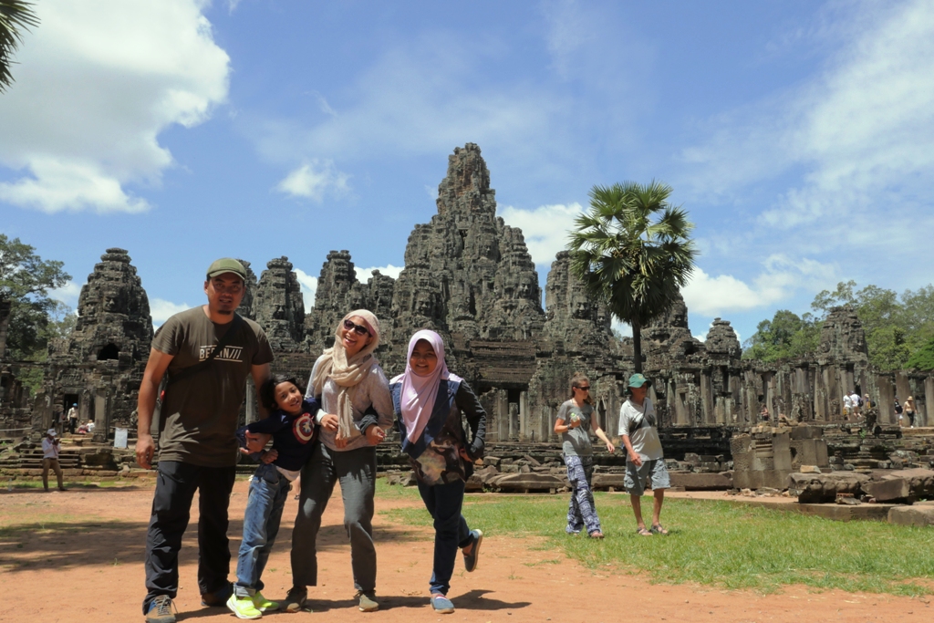 Setelah dari pagi banget sampai tengah hari keliling Angkor Wat yang lumayan luas (baca di sini), waktu tersisa kami maksimalkan buat jalan-jalan di dua candi lagi, yaitu candi Bayon dan Ta Prohm. Bisa dibilang, dua candi inilah –selain Angkor Wat– yang paling populer dan harus masuk daftar kunjungan kalau ke Angkor Wat.