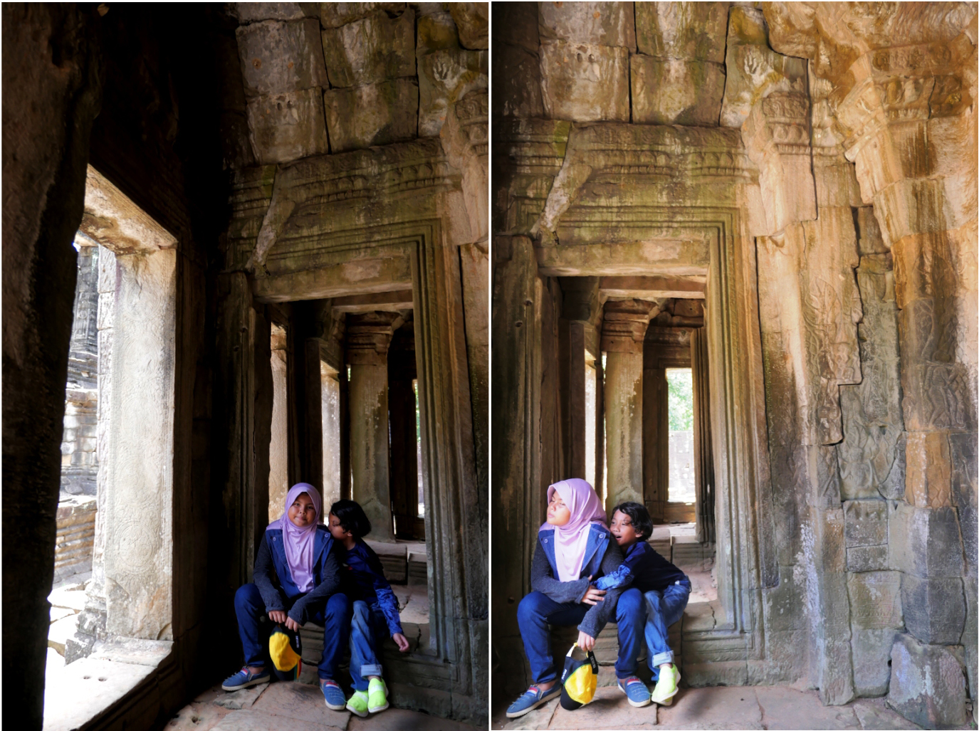 Makanya jangan heran kalau foto di dalam candi kebanyakan foto Keano. Sebab saya dan Lana justru hampir bisa dibilang gak menjelajahinya. Cuma sebentar sebelum terpisah, kebelet pipis, dan drama cari-carian di bagian luar candi. Untung sebelum masuk tadi sempet foto-foto bersama. Lumayan lah ada dokumentasi, buat kenang-kenangan,