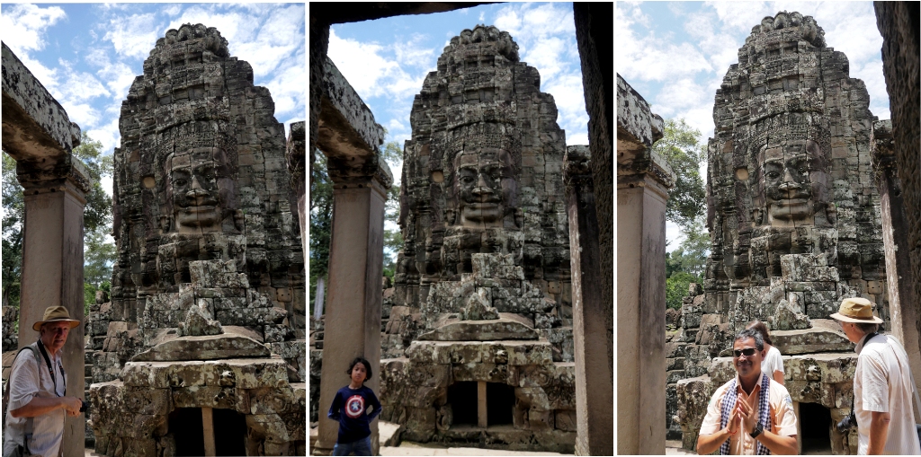 Di komplek candi Bayon, hampir keseluruhan atau mungkin semuanya, candi dan menara-menaranya berelief wajah di ke empat sisinya. Sangat khas dan gampang dikenali. Dilihat dari kejauhan, misal waktu masih jalan di atas tuk-tuk, candi Bayon ini sudah bisa dikenali. Karena relief wajahnya lumayan besar dan ada di semua penjuru candi.