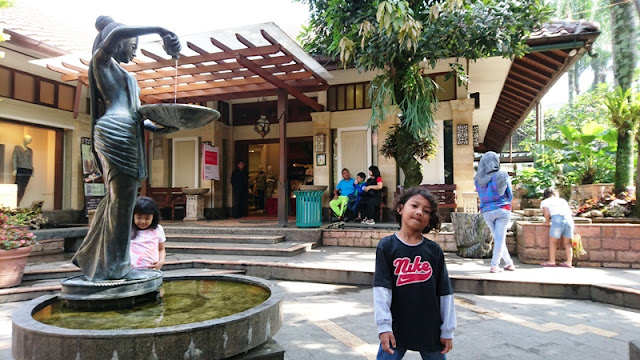 Lanjut jalan ke taman lansia yang ada di seberangnya. Lana dan Keano sempet foto-foto sama dinosaurus. Patung dinosaurus tepatnya. Mungkin karena dinosaurus hidup di zaman purba. Maka ada patungnya di taman lansia. Untuk fakta akuratnya boleh tanya sama Pak Ridwan Kamil yang istrinya cantik jelita.