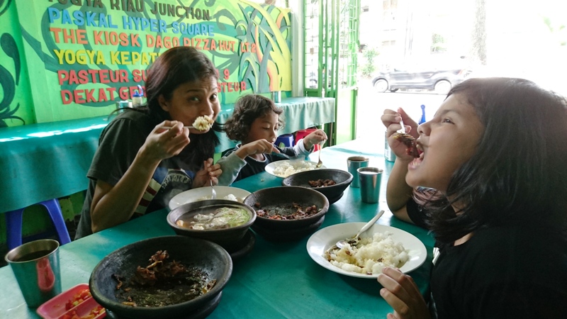 Saya mau cerita soal makanan aja. Mungkin udah pernah ada yang nyobain, tapi kalau saya, suami, Lana dan Keano baru sekali ini mampir. Endezz banget deh. Namanya Iga Bakar Si Jangkung. Alamatnya di Jl. Cipaganti No.75. Gak jauh dari Rumah Mode, tinggal turun dari Setiabudi ke Cipaganti. Iga bakar ditaruh di atas hot plate tradisional. Dagingnya empuk, dan bagi yang suka pedes bisa minta tambahan potongan rawit di atasnya.
