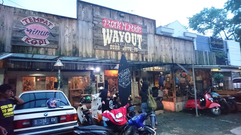 Sebelum pulang ke Depok, sebagai yang pernah bercita-cita jadi rocker, saya minta ke suami buat mampir ke Way Out. Mau liat koleksi boots-nya. Waktu sampai di sana, yang ada cuma pria-pria bertatto di depannya. Mereka rocker beneran kayaknya. Saya kan cuma cita-cita. Sedikit jiper saya nanya ini gallery buka atau nggak. Eh ternyata dijawab lho.. Katanya tokonya tutup. Tapi saya gak berani nanya lagi, tutup sementara, tutup karena udah waktunya tutup yang meskipun menurut saya belum waktunya karena matahari masih keliatan sinarnya, atau emang tutup selamanya. Apapun jawabannya, efeknya sih semua sama buat saya. Hari itu intinya saya gak bisa liat aja koleksi boots Way Out. Saya gak punya keberanian nanya lagi, nanti browsing ajalah, ini gallery masih beroperasi atau nggak. (dan belum browsing juga sampe nulis ini)