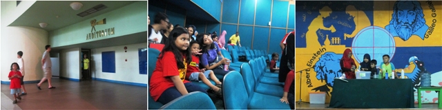 Di Pusat Peragaan IPTEK TMII ini, gak cuma bisa mainin alat peraga. Tapi kami bisa nonton pertunjukan dan ada demo sains juga, salah satunya di auditorium. Di sini sains diperagakan secara sederhana dan interaktif dengan pengunjung. Selain demo sains, sebelumnya kami disuguhin film tentang sains.
