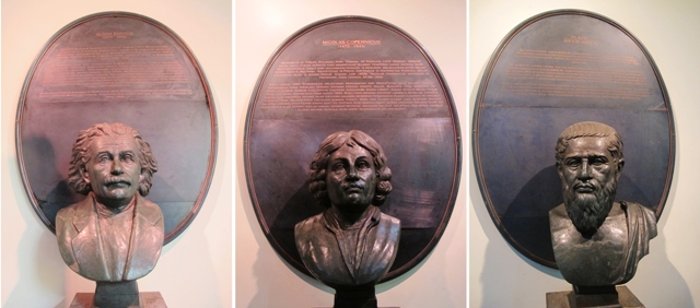 Beli tiket 16.500 rupiah per orang (umur 3 tahun ke atas dikenakan tiket), dari pintu masuk kami ambil arah yang ke kiri. Langsung ketemu buste atau patung kepala tokoh-tokoh dunia IPTEK, di antaranya Plato, Albert Einstein, dan Nicolas Copernicus. Gak jauh dari situ, ada sterteogram Dinosaurus, gambar acak kaya batik bugis yang di dalamnya tersembunyi bentuk dinosaurus. Kami berdiri di depannya dan nyari gambar dinosaurus. Yossie yang pertama nemu gambar dinosaurusnya. Saya sama Lana masih belum nemu juga. Sudah muter kemana-mana, balik lagi ke situ, akhirnya Lana berhasil lihat dinosaurus di stereogram. Sudah sampai mata jereng-jereng, saya masih belum nemu, padahal biasanya kalo yang tiga dimensi kaya gitu cepet nemunya. Ya udah lah nyerah saja. Mending jalan lagi ke tempat lain. Atau ngikut Keano yang asyik lihatin patung Dinosaurus yang bisa bergerak dan bersuara.