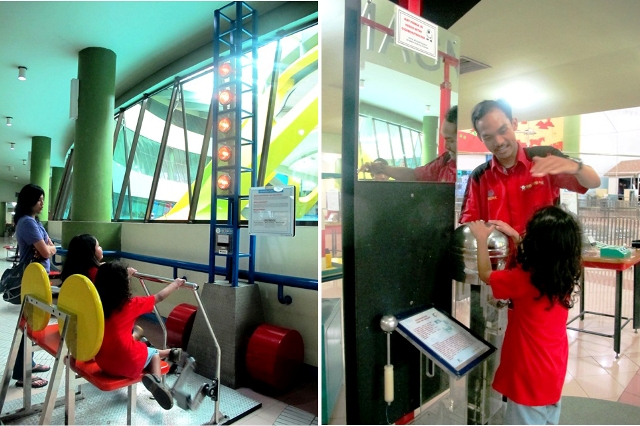 Dari dinosaurus di Taman Jurrasic, lanjut jalan dan nemu Generator Pedal atau alat peraga yang kalau pedalnya dikayuh, lampu di depannya bisa nyala. Semakin cepat gowes, lampu yang nyala makin banyak dan makin terang. Prinsip kerjanya alat ini, tenaga gerak dari gowesan diubah jadi tenaga listrik.