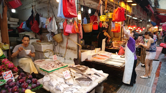 Buah, sayur, daging dan ikan segar semua ada di sini. Baunya, ya bau pasar. Anak-anak sih gak terlalu suka. Sementara saya sama suami justru berlama-lama ambil foto di sini.