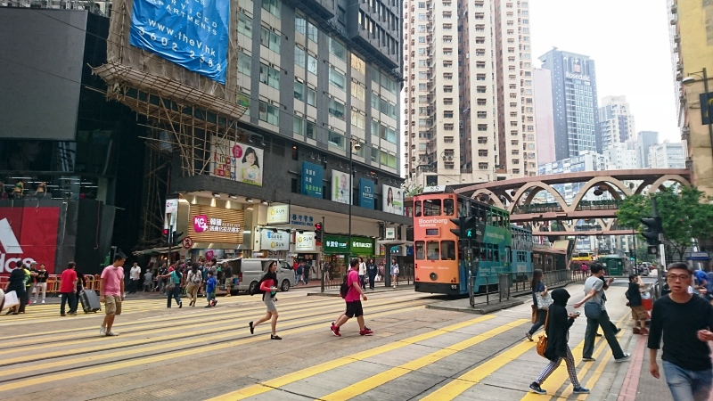 Di Causeway Bay ini ada penampakan trem. Kalau di Kowloon sebelumnya nggak ada. Untuk jarak deket, enak bepergian naik trem ini. Haltenya di tengah jalan. Selain tranportasi umum yang menyenangkan, Keano suka Hong Kong karena banyak mobil mewah seliweran. Gak berhenti-berhenti deh Keano teriak kalau ada mobil sport keren yang lewat. Dan ini sering banget. Kita sampe capek dipanggil-panggil suruh liat mobil sama bocah ini.