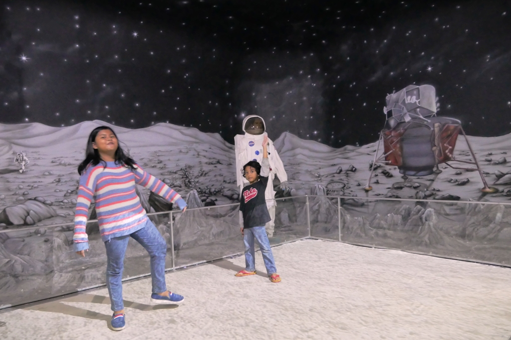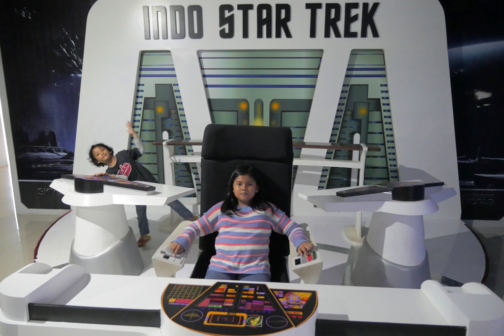 Masuk ke dalam lagi, ikutin jalur, banyak gambar-gambar, diorama, serta penjelasan tentang ruang angkasa. Ada spot foto pula yang membuat kita seolah sedang berada di bulan. Gak cuma itu, ada juga spot foto macam di ruang kendali kapal di film Star Trek.