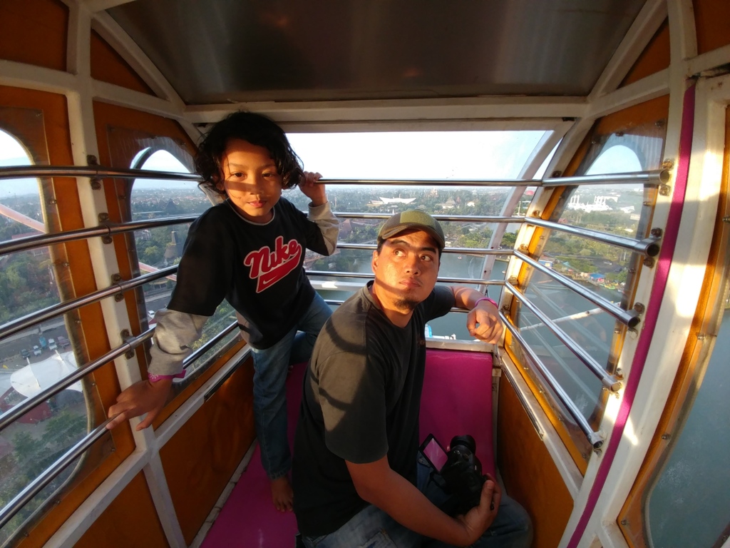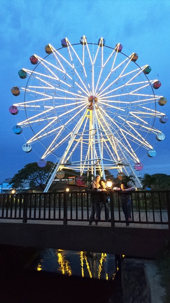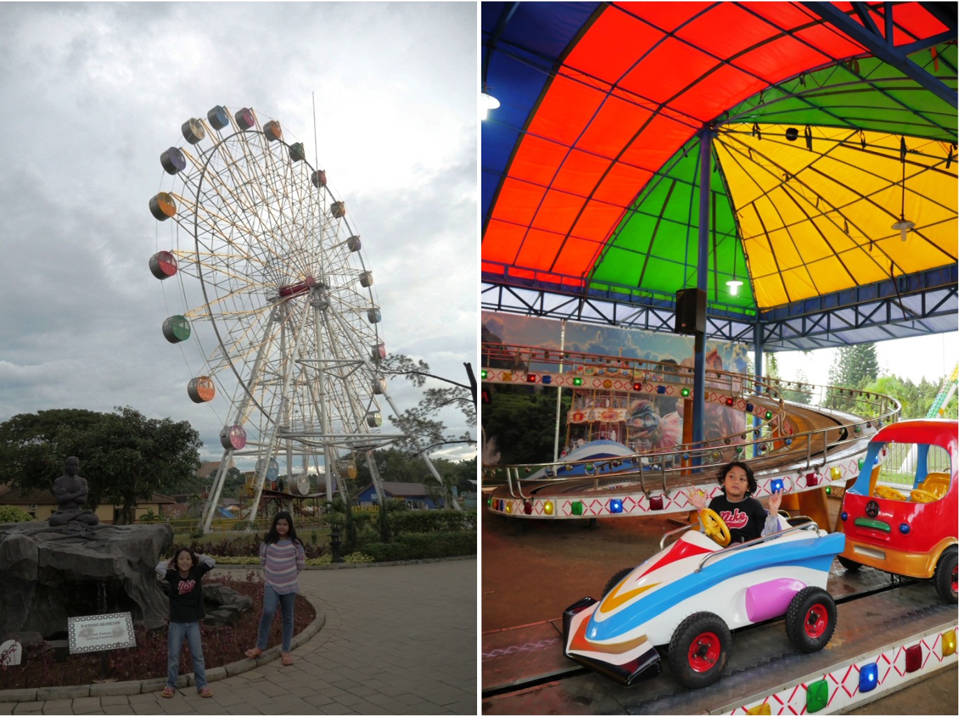 Yuuuk sekarang masuk ke dalam. Yang pertama keliatan adalah ferris wheel yang asik banget dinaikin sore menjelang senja. Kalau dalam bahasa Indonesia, ternyata ferris wheel disebut kincir ria. Tapi mungkin kita lebih mengenalnya sebagai bianglala, merujuk nama wahana sejenis di Dunia Fantasi Ancol. Naaah, di Taman Legenda ini, ferris wheel disebut dengan Mata Legenda.