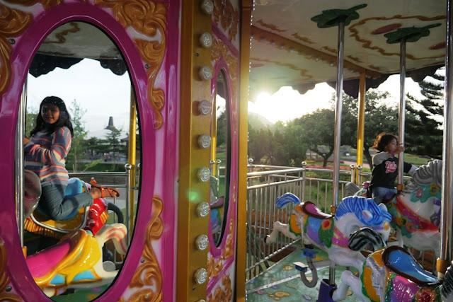 Lalu, anak-anak pasti seneng banget diajak naik carousel alias korsel alias komidi putar alias kuda-kudaan, meski gak semua patung tunggangan-nya berbentuk kuda. Istimewanya, korsel di sini terdiri atas dua lantai. Bisa pilih mau di bawah, atau tangga ke atas.