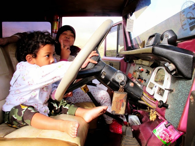 Tanpa mengurangi kegaharannya dalam menjelajah kawasan Bromo, warna pink Jeep Hardtop ini sangat kids friendly, termasuk mas supirnya yang sangat ramah dan rajin menawarkan diri menjadi fotografer dadakan keluarga kami. Warna jip yang cocok buat Lana. Dan mobil yang sangat disukai Keano.