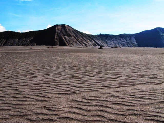 Satu lagi nama tempat di Bromo yang diambil dari judul film, Pasir Berbisik. Lautan pasir di sekitar kaldera Bromo. Hamparan pasirnya yang lembut dan berwarna hitam, sangat kontras dengan birunya langit. Gak heran jika film ‘Pasir Berbisik’ memilih lokasi ini, dan terbukti mampu menghasilkan gambar atau sinematografi yang sangat apik.