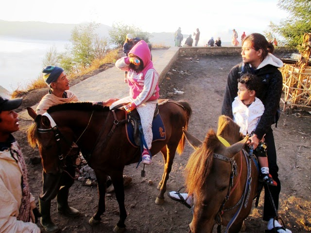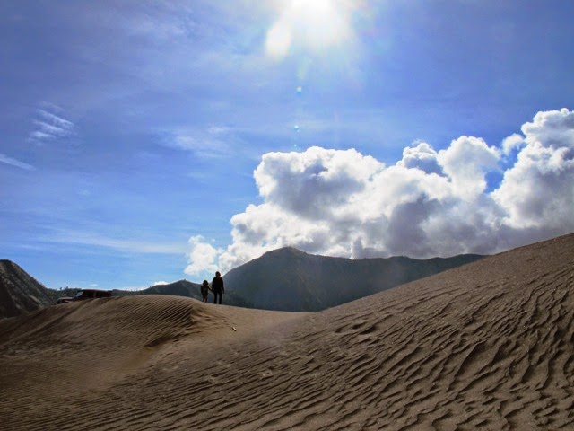 Lautan pasir berbisik sebagai penutup perjalanan setelah setengah hari penuh di Bromo. Dibilang lautan pasir, karena memang sangat luas dengan pasir hitamnya yang sangat lembut. Anak-anak dilepas juga gak bakalan khawatir, bebas mau berlarian atau guling-gulingan.