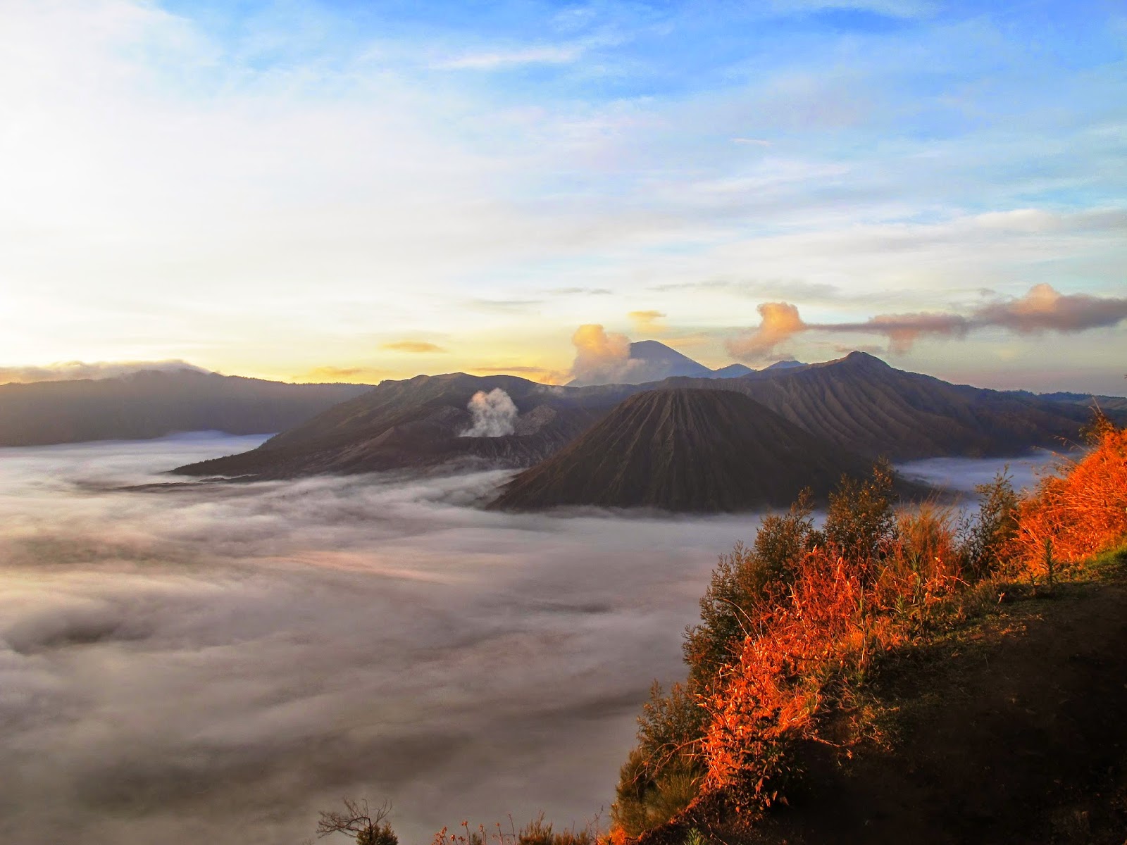 Momen-momen matahari terbit Bromo dengan selimut awan putih dan kabut mengelilingi gunung, adalah magnet terkuat untuk kami merelakan berkurangnya jatah waktu tidur karena harus bangun jam tiga dini hari.