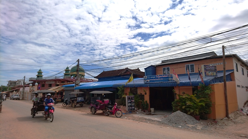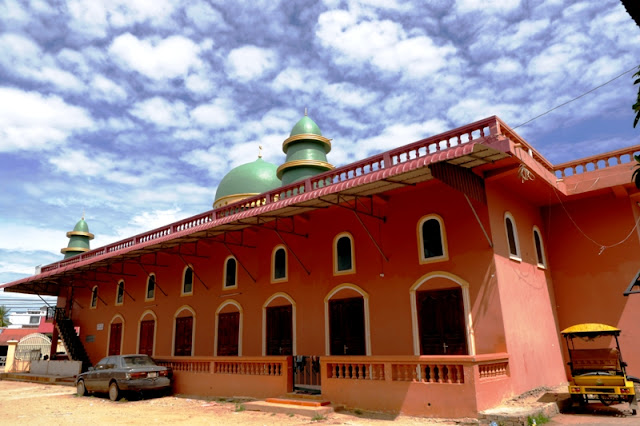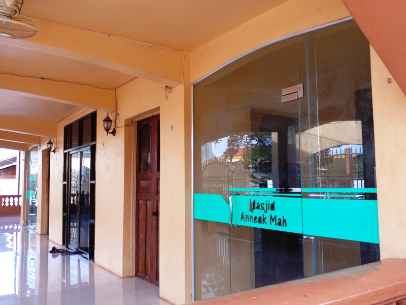Di Siem Reap, kebanyakan turis menginap di sekitar Sok San Road, Central Market Street, atau gak jauh-jauh dari Old Market dan Pub Street. Nah, kawasan kampung Islam di terletak di Fungky Lane, persis di belakang Sok San Road. Tinggal jalan kaki gak sampai 10 menit. Penanda kampung muslim ini adalah sebuah masjid yang berdiri di pinggir jalan. Namanya masjid Anneak Mah.