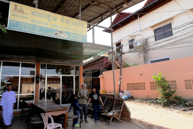 Keberadaan kampung muslim di Siem Reap membuat kami gak susah cari makan. Ada banyak restoran halal di sini. Lokasinya juga gak terlalu berjauhan. Yang pertama kami coba untuk makan siang adalah Muslim Family Restaurant. Lokasi paling deket sama masjid, sebelahan dengan madrasah.