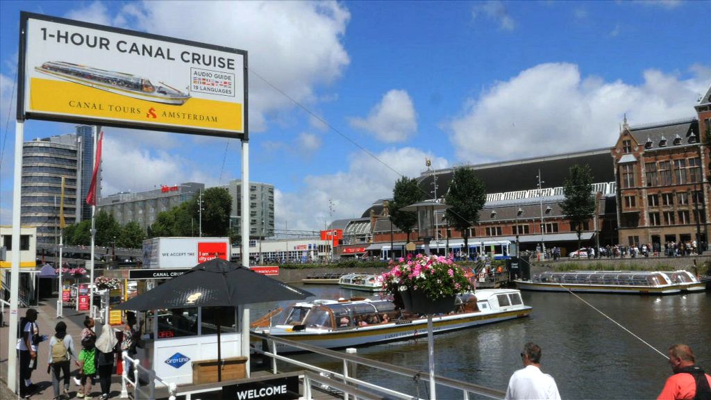 Lanjut yuk, jalan kaki dari Amsterdam Centraal ke tempat kita bisa naik cruise keliling kanal. Yes, cukup jalan kaki. Kanal-kanal legendaris Amsterdam sudah keliatan di depan mata kok dari stasiun. Tinggal nyebrang jembatan dikit.