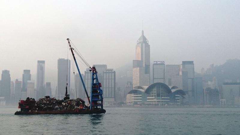 Pagi hari juga kelihatannya dimanfaatin buat bersihin area Victoria Harbour. Kapal pengangkut sampah beroperasi, sebelum digantikan kapal-kapal wisata atau ferry yang sebentar lagi lalu lalang mengantarkan warga dan wisatawan di antara Kowloon dan Pulau Hong Kong.