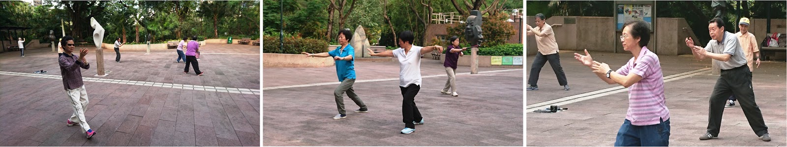 Kowloon Park ini memang jadi andalan warga setempat atau turis buat menikmati sisi kota yang berbeda. Hijau, segar, bersih, dan tempatnya luas. Seperti halnya taman kota di Hong Kong, pemandangan yang lazim dilihat di sini juga sama. Kebanyakan pengunjung taman di sini adalah orang tua atau manula. Ada yang jogging, senam, tai chi, dan mirip-mirip meditasi. Ada yang asyik sendiri, ada juga yang berkelompok. Rata-rata kelihatannya masih bugar. Mungkin kelihatannya mereka gak pernah kenal dengan yang namanya asam urat, encok, rematik, pengapuran, atau saraf kejepit seperti yang lagi hits di Indonesia.