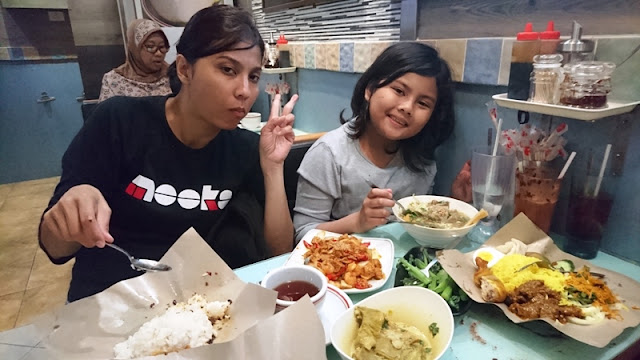Kami memesan beef dan chicken curry, lengkap dengan roti prata. Buat Lana, semua masuk perut. Anak perempuan saya ini, selera makannya mengikuti suami. Cuma ada rasa enak dan enak banget buat dia. Lana juga seneng mencoba menu-menu baru. Beda sama adiknya Keano. Si kecil agak picky. Pertama, dia gak suka masakan pedas, sama sekali. Kedua, Keano sulit menerima menu baru. Biasanya dia akan mengamati dulu makanannya. Dicoba secolek. kalau lidahnya gak suka.. Bhay..
