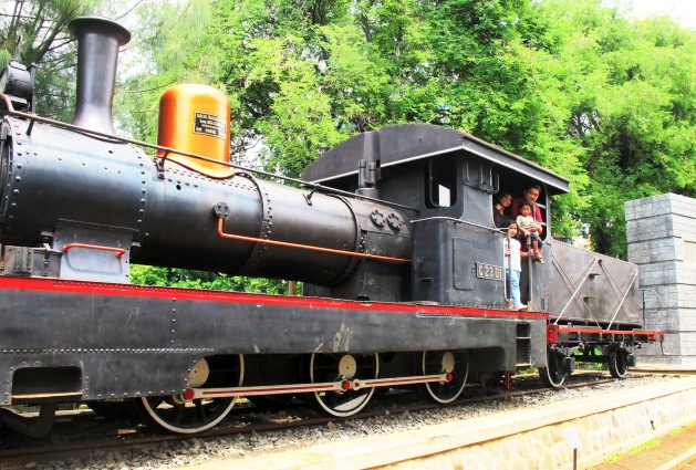 Yang namanya museum kereta api, tentu gak afdol kalau nggak ada kereta apinya. Jangan khawatir, lokomotif kereta uap sengaja ngejogrokdi depan gedung buat dipamerkan dan mempertegas nuansa kereta apinya. Boleh dipegang, dan juga dinaikkin. Tapi gak boleh dibawa kebut-kebutan, emang gak bisa jalan juga.