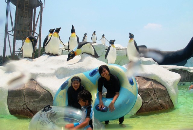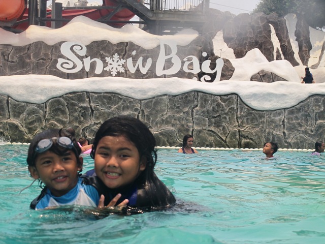 Sering bolak balik ke Taman Mini, dan juga penyuka main air, waterpark yang satu ini malah termasuk yang terlambat buat kami jajal. Padahal hampir setiap ke TMII, Lana dan Keano selalu ngajak buat berenang di Snow Bay. Cuma karena memang gak pernah diseriusin, dan juga lebih sering tergoda dengan permainan lain di TMII, akhirnya rencana ke Snow Bay selalu ntar ntar terus.