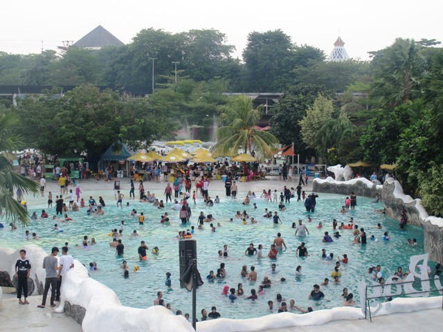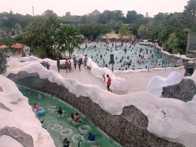Kolam ini hanya berombak di jadwal-jadwal yang sudah ditentuin. Kalau gak salah setiap 15 menit. Di kolam ini kita gak boleh pakai ban. Ada enak dan gak enaknya sih. Gak enaknya, kita jadi gak bisa santai di atas ban digoyang-goyang ombak. (Di Legoland Malaysia dan The Jungle Bogor, kolam ombaknya boleh pakai ban). Enaknya gak boleh pakai ban di sini, karena emang tempatnya gak terlalu luas, tanpa ban jadi masih ada tempat dan jarak buat kita main. Kebayang kalo boleh pakai ban, bisa macet dan gak kebagian tempat.