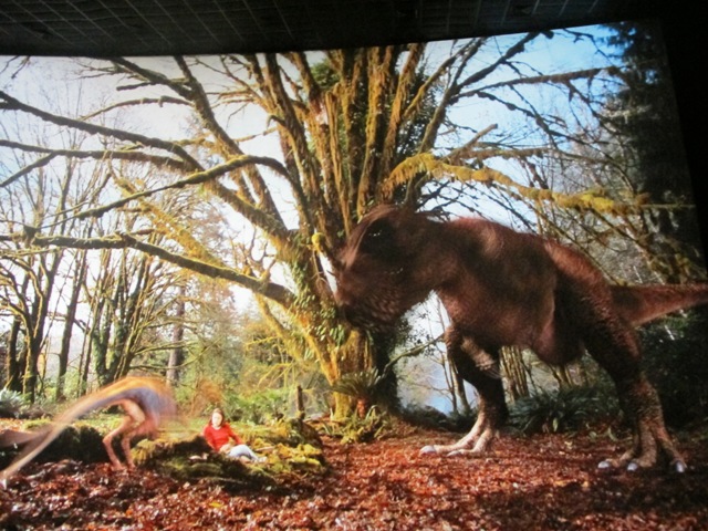 Nonton film T-Rex, karena memang cuma film itu yang masih ada jamnya. Bayar 30 ribu per orang, anak-anak 3 tahun ke atas bayar penuh. Lumayan lah, sekitar 20 menit nonton sambil istirahat. Bukan cuma keong emasnya yang jadul, filmnya juga sudah jadul.