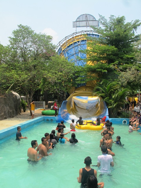 Seperti biasa setiap ke waterpark yang ada kolam arusnya, biasanya kolam arus ini jadi wahana pertama yang kami jajal. Maksudnya sih selain buat nyantai pemanasan, juga buat penjajagan lokasi dulu. Muter-muter ngambang pakai ban lihat-lihat lokasi, sambil ngincer wahana selanjutnya. Karena kolam arus ini biasanya muterin kawasan, dan lewatin wahana-wahana lainnya.