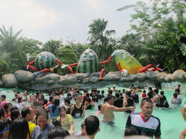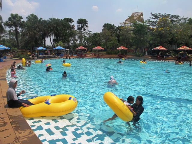 Lalu, satu lagi yang gak boleh lewat, yaitu kolam ombak. Ombak gede akan datang sesuai jadwal tayang. Waktu kita ke sana, bisa cobain ombak gede pas jam 1 dan jam 3 siang. Serulah, terombang-ambing di tengah ombak sambil desak-desakan dengan pengunjung lain. Masuk kolam ombak ini gak boleh bawa ban. Nikmati aja sensasinya sambil berdiri.