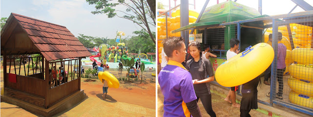Waktu ngajak anak ke sana, selain biaya masuk ada biaya lain yang mesti keluar. Yakni sewa ban, kalau mau pake ban. Btewe, di beberapa slider memang mesti pake ban baru bisa berseluncur. Harga sewa ban single 40 ribu, kalau ban yang bisa dipake bedua 50 ribu. Sistem sewanya pake deposit, terus dikasih gelang. Nanti kalau sudah selesai gelangnya dikembalikan, dan kita akan mendapatkan kembali sisa uang deposit yang tidak terpakai.