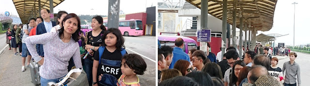 Sampai di Makau, kami langsung mencari bus gratisan menuju penginapan. Hotel-hotel besar di Makau (dan banyak banget di sini hotelnya), menyediakan shuttle bus for free. Terminalnya ada di seberang pelabuhan. Jadi tinggal jalan kaki aja sambil nyeret-nyeret koper. Begitu di terminal, carilah bus menuju hotel masing-masing. Setiap hotel, punya titik tunggu sendiri. Ada petugas yang mengatur keberangkatan serta memberikan informasi bagi tamu. Gak butuh syarat apa-apa untuk naik. Gak ditanyain juga udah buking kamar atau belum. Yang penting mau antre, terus naik deh kalau udah dapat giliran.