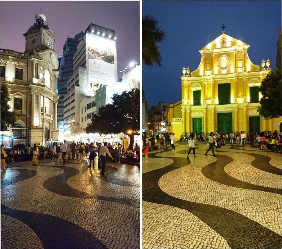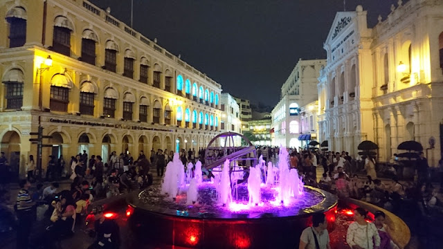 Sempet muter-muter labirin, ada hikmahnya. Makau malam itu mengubah image-nya di mata saya. Bangunan tradisional khas Cina, berpadu dengan nuansa peninggalan eropa, ditambah pendar cahaya tungsten membuatnya tampak eksotik. Ini bagian yang gak terbayangkan oleh saya sebelumnya tentang Makau.