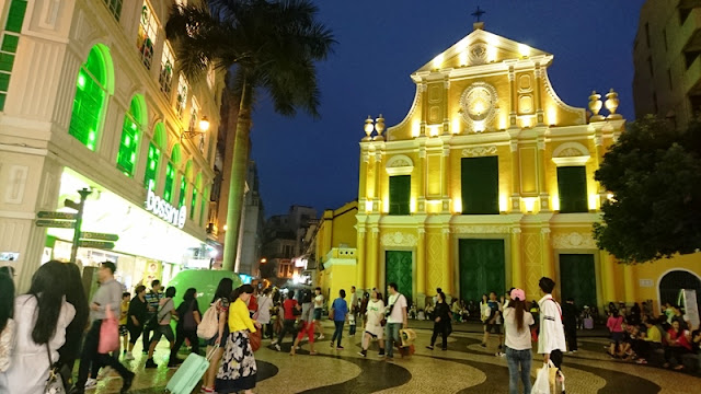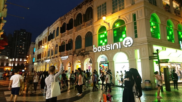 Senado Square jadi tujuan pertama kami sore itu. Orang bejubel rame banget. Inilah bekas pusat koloni Portugis. Gedung-gedung peninggalannya masih berdiri jumawa. Senado Square adalah salah satu pusat sejarah Makau yang dinobatkan menjadi warisan sejarah dunia oleh Unesco. Sebagian gedung tua menjadi toko-toko tanpa mengubah arsitekturnya. Perjalanan menyusuri tempat bersejarah ini sangat menyenangkan. Apalagi saya ketemu toko kecil yang menjual aneka koleksi boots Dr. Martens. Oops jadi salah fokus hahaha.. Sebenernya pengen nambah koleksi Docmart satu lagi. Tapi belum terwujud pada kesempatan ini.