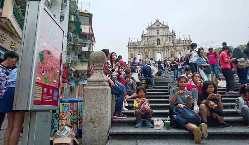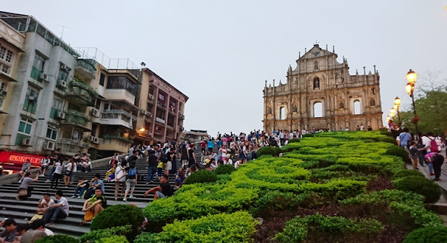 Reruntuhan St. Paul menurut saya adalah tempat yang paling ikonik di Makau. Bangunan tinggal tersisa penampang depannya saja. Tahun 1600-an, gereja St. Paul menjadi gereja katolik terbesar di Asia Timur. Namun konflik terjadi, para pendiri gereja diusir dari tempat ini. Bangunan pun menjadi barak tentara. Tahun 1800-an bangunan terbakar hebat. Dan sisanya seperti yang sekarang terlihat. Biar bangunan cuma menyisakan sepotong fasad, ia berjasa mendatangkan jutaan turis ke Makau. Lagi-lagi, Unesco juga menjadikan tempat ini sebagai warisan dunia.