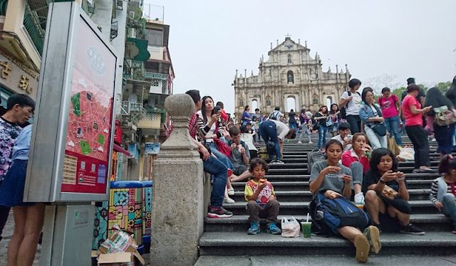 Begitu dapat tumpangan, bocah-bocah yang tadinya cranky karena capek antre berdiri langsung anteng. Saya menikmati pemandangan Makau, yang sebagian dihiasi gedung-gedung tua bernuansa Eropa.