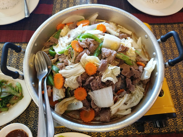 Tapi bakal nyesel kalau gak nyoba si Lembu Naik Bukit ini. Menu andalan dan recomended di Siem Reap, selain lok lak dan amok. Porsinya lumayan besar, bisa buat rame-rame. Buat sekeluarga, atau 2-3 orang icip-icip, masih cukup dan kebagian enaknya lah.