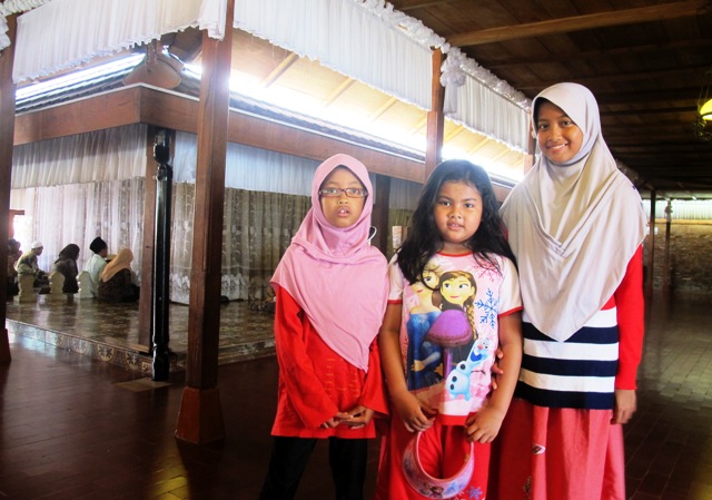 Dan pagi ini (24 Desember 2014), kami memilih rehat sejenak di kota Wali. Persisnya di daerah Kadilangu Demak, kawasan makam Sunan Kalijaga, sunan yang diceritakan di dalam film sedang bertapa di pinggir sungai. Kami langsung merasakan suasana ramai para wisatawan dan peziarah yang dari subuh sudah memenuhi kawasan. Ini bisa terlihat dari mobil dan bis-bis rombongan yang memadati parkiran khusus peziarah. Gak tahu apa ada atau gak di antara mereka, terlintas adegan bertapa lumutan dan kolang-kaling berubah emas. Yang ada, kelihatannya mereka sangat serius berziarah, berdoa dan juga sekedar wisata.