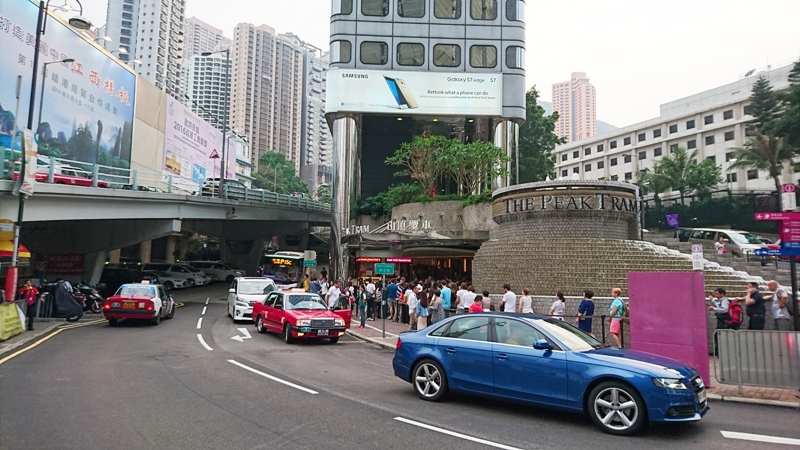 Dari dermaga Central, kami memilih jalan kaki ke lower terminus The Peak Tram. Rencananya, memang mau naik tram ke Victoria Peak. Kalau liat di peta sih deket. Tapi ternyata, kalau dijalani lumayan bikin gempor. Apalagi, sempat salah arah, dan kita gak bisa asal nyebrang jalan juga. Jadi harus muter, atau cari jembatan penyebrangan. Tambah jauh dah. Ditambah rengekan Keano yang kecapekan, plus kaki Lana lecet karena sandalnya gak nyaman. Pas deh.. cocok udah. Paling bener dan paling cepat memang naik bus, dari dermaga Central ke terminal tram ini. Hal ini kami lakukan saat pulang kemudian. No more walking, it’s enough.. huft.