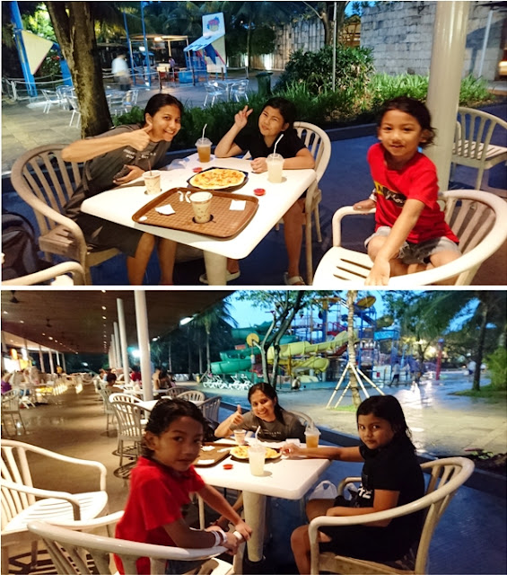 Ngabuburit main airnya sukses. Puasa Lana dan Keano lancar sampai maghrib. Adzan Maghrib berkumandang pas begitu selesai bilas dan ganti baju. Untuk membatalkan puasa, menu pizza pun kami pesan di food court. Untuk makan beratnya, kami berniat makan di luar. Mumpung lagi di PIK, kapan lagi nyoba tempat makan yang belum beredar di Depok. Sekalian jalan dan lihat-lihat suasana PIK di malam hari.