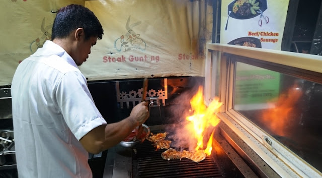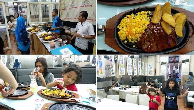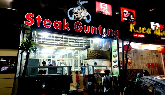 Ternyata banyak resto atau tempat makan menarik di sini. Awalnya agak bingung karena banyak pilihan. Atas permintaan dan persetujuan anak-anak, diputuskan bersama kalau steak jadi pilihan. Setelah keliling satu puteran, dan lewat beberapa resto steak, akhirnya Steak Gunting di Jalan Marina Indah Raya jadi pilihan.